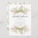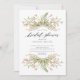 Fin vattenfärgsfärgad rosa blommigt och grönt inbjudningskort för möhippan med en samordnande grönt tillbaka.