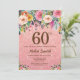 Blommigt för Rosa vid ro Glitter 60:e födelsedag Inbjudningar