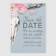 Meddela din bröllop förlovning till familj och vänner med den här boho-stilade spara datum magneter. Den här roliga tematiska designmallen har en hand plockade och målad skalle av ko med en rosa blommigt vattenfärg ro headdress på en bakgrund av blått grått-barrträ. Kortet läser i grått-skriptet "Ändra datum för bröllop" med ditt bröllop-datum och namn för att anpassa sig. Designad av konstnären Susan Coffey.
