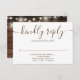 En rustik OSA kort med dina uppgifter i chic typografi och personlig med namn och handritad löv och ljus på en rustik träpanelbakgrund på baksidan. Designad av Thisisnotme©