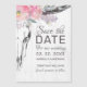 Meddela din bröllop-förlovning till familj och vänner med den här boho stilade spara datum magneter. Den här ritade teman har en hand plockade och en målad skalle av kon med en rosa ro-blommigt--adress i bakgrunden av vitt och grått-barkat trä. Kortet läser i grått-skriptet "Ändra datum, för bröllop" med ditt bröllop-datum och namn för att anpassa sig. Designad av konstnären Susan Coffey.