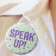 Ännu ett sött hörselmärke av JessicaAmber! Den här kommandoknappen har parollen "Tala upp!" på en blommigt i ett schema för lila och grönt i färg. Du kan redigera texten om du vill. En underbar gåva till din mor eller mormor som har på sig att höra aids. ⭐ För mer speciella behovsmärken, gå till min butik zazzle.com/jessicaamberartist ⭐ För anpassningsbar order, meddela mig på Zazzle