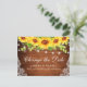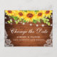 Modern Elegant Watercolor Solros Blommigt and Greenery Ändra Postponement Postcard-datum Bröllop innehåller solblommor och grönt på rustiskt trä med strängen ljus och snöre.