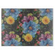 Vackra rektangulära skärskivor har stor målad primär blåa blommor med mindre i marigold gult, lila och rosa, allt på en grått med kol som bakgrund ge det en mörk och elegant. Matchningsartiklar tillgängliga för sängar, bad och i hela hemmet