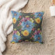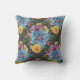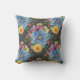 Söt blommigt-kuddedesign har stor målad primär blåa blommor med mindre mörk i marigold gult, lila och rosa, allt på en träkol-grått-bakgrund ge det en elegant och .
