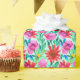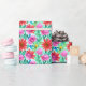 Grönt, rosa, blå och röd vattenfärg blommor och blad- och presentfigursättning.
