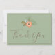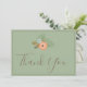Tackkort av blommigt med vacker grönt gör att du kan visa din uppskattning för gästerna i klassy stil. Framsidan har en underbar grönt med rosa och blå blommigt. "Tack" är skrivet med ett vackert brunt teckensnitt.