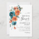 Blommigt för Teal Burnt Orange Rustic Möhippa Inbjudningar