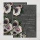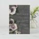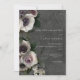 Den här krävande bröllopsinbjudan har en fängslande spray av blek lavender, vit, grönt och blek rosa anemoner och ro, som på ett elegant sätt arrangeras mot en luxuriös mörk kol grått-bakgrund med mjuk marbleiserad verkan. Den rena, moderna vita typografin tillför en smula elegans och skapar denna inbjudan till perfekten att välja ett romantiskt och sofistikerat bröllop. Skapat av Farmhouse Press.