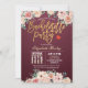 Inbjudningskortsmall för Bachelorette-partiet - Elegant Guld Bachelorette Party Lettering med Vintage Watercolor Blommigt Burgundy Red Background. En Perfekt för din stora dag. Alla textstorlekar stil, färg, kan ändras för att passa dina behov.