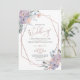 Vackra bröllopsinbjudningar för blommigt med boho-blommor i blad av violett, lilak, lila, persika, , dammiga blått och gröntar med ro guld eller terra cotta-geometriskt ram och text och accentuerade på baksidan med ett redigerbart fast färg för att samordna med bröllop färger (exemplet visar dammiga blått). ÄNDRINGAR: Text- och bakgrundsinformation färger kan ändras så att de stämmer överens med färg-schemat genom att klicka på CUSTOMIZE FURTHER i avsnittet PERSONALIZE för ett anpassad design. Kontakta designern via Zazzle-Chattan eller makeitaboutyoustore@gmail.com om du vill att designen ska ändras, på en annan produkt eller om du vill ha koordinerande artiklar.