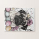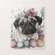 Pussel av blommigt med för pug i påsk. Rustiska vattenfärger och stil- pastellpug med Påskägg och botaniska blommigtar.