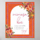 Den här möhippan i roligten har orange, rosa och lila. Bakgrunden är en geometrisk orange och magenta mönster med övertäckta vattenfärgblommor, inklusive ro och vilda blommor.