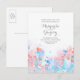 Romantisk och elegant sparar datumet vykort med vattenfärgade masterblommor - blå rosa och skuggor