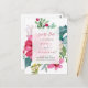 Det vackra och elegant vykortet bröllop eller helgdag på vintern har en trendig vattenfärgad blommigt på en skarp vit bakgrund. En blandning av poinsettiska blommor, hullbär och löv är färgad i höggradiga skuggor av rött, rosa, grönt, och blått. Baksidan av vykortet har en matchande andekrans för blommigten med utrymme för mer information.