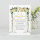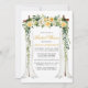 Elegant Watercolor Gult White Blommigt Canopy Inbjudningskort för möhippan Card innehåller vackra guldfärgade gul ros och vita blommor. Träets kanopi omfattar botaniskt grönt.