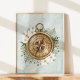 Vi presenterar vår Blommigt Compass-Poster för vattenfärgsblommor och Grönt Löv. Med en fantastisk vattenfärgsillustration av en brons-kompass omgiven av en andedräkt av löv och blommor på en grönts sidbakgrund.