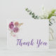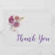 Ett vackert lila vattenfärgsblomma som visar vattenfärgens skönhet. Tack, ditt kort har en vacker blomgrafik i det övre lämnat hörnet på en lätt lila bakgrund. Vid grund till högerna står "Tack" på ett vackert sätt i lilans kursiva text. Anpassa din i dag!