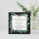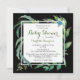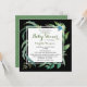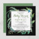 Den här moderna och trendiget Baby Shower-designen har en snyggt vattenfärg ram i gröntens löv på en chic svart bakgrund som omger personligen Lång Avstånd Virtuella inbjudningsinformation för babyskor. Redigera bara texten i textrutorna.