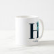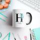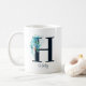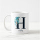 En personlig kaffe mugg med ett brev "H"-monogram, med blå vattenfärgblommor, bohemisk. Anpassa den enkelt med brev eller skapa en unik gåva till dina nära.