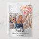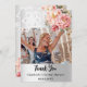 Ett modernt Tack-fotokort för Möhippa. En faux silver tittar bakgrund som dekorerats med rosa ros, blommor och snöre. Anpassa och lägg till fotot på framsidan och tackkort på baksidan.