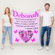 den andres frukt med den här fina rosa vild blommans hjärta och fjärilfilt av personlig. Var uppmuntrad med galatianernas ordbok 5:22-23 " kärlek, glädje, fred, tålamod, vänlighet, generositet, trohet, mildhet, självkontroll." Den inspirerande galatianerna 5:22-designen blir en uppskattad gåva när du välsignar din speciella kristna person i ditt liv. Denna vackra Fruits av den personlig filten "Spirit" kommer att se underbar ut i ditt hem. med allt Jesus Kristus är Herren av ditt hjärta och din själs skötare.