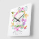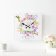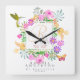 Blommigt Garden Monogram White Fyrkantig Klocka