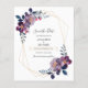 Ljud, modern blommigt för trendig sparar det datumbudgetkort som du enkelt kan anpassa genom att klicka på knappen "Anpassa". Har guld-folie geometrisk ram dammiga blå lila blommor med manustext