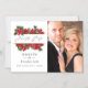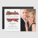 Trendig-Jristmas-magnetkortet bröllop sparar datumkortet med guld-geometriskt ram och handskriftstypografi med sligh klockor, poinsettimiblommor, holly, mistletoe och gräs.