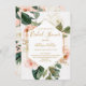 Blommigt Geometric Inbjudningskort för möhippan Loely damsty rosa, vit och grönt blommigt inbjudningskort för möhippan och geometrisk faux guld foil ram. Den här djärva designen passar alla som tycker om vattenfärgsdesign med vintage och en modern blommigt. All text är redigerbar och skapar mallen mycket flexibel.