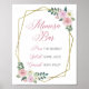 Blommigtens Geometric Mimosa Pub-tecken har ljust rosa och lila blommor med guld-geometriska accenter. Det här tecknet kan användas för alla händelser, t.ex. Möhippa, Bröllop, babyskor och födelsedagar