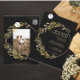 Svart och Guld Blommigt Geometriskt Ram bröllopsinbjudan med personlig på baksidan.