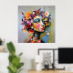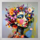 "Blommigt Geometry" - Ett botaniskt Porträtt. Ett komplicerat möte med vinkelliknande mosaikliknande design och överflödig blommigt definierar detta arbete. Kvinnans piercing ser ut i kontrast till mjuka blommar, vilket skapar en balans mellan precision och kaos. En levande palett med nyp, , lila och belyser sambandet mellan strukturen och organismen, vilket ger ett modernt, oförglömligt porträtt.