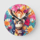 Blommigt Giraffe Porträtt-9320 Rund Klocka