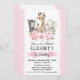 Blommigt Girl Safari Baby djur Birthday Inbjudningar