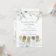 Vackra vita blommigtar och eukalyptus löv dekorerar framns överdel och grund och den lämnat sidan på baksidan. En illustration av baksidan av en brud och hennes brudgummihårstilar finns vid grund. Typografin på båda sidor är enkel och elegant och lätt personlig till detaljerna hos ditt Bachelorette Party. Din rutt till helg är på baksidan. Om du vill kan du ändra bakgrunden till färger på båda sidor och texten till ett annat färg om du vill det genom att klicka för att anpassa ytterligare.