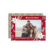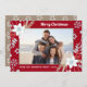 Julkortet har blommor och faux glitter löv, stjärnor och snöflingor. Anpassa den med eget foto och egen text.