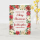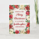God jul för guddottern och hennes make-kort med roliga vattenfärgade blommor och vintage trä mönster.