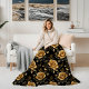 Blommigt Golden and Black Elegant Ro Fleecefilt