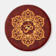 En Aum- eller Om-design finns inuti en stiliserad lotus-blomma. Det cirkulära mönster är färgad med en gyllene gult som lyfts fram för att skapa en ljussken på yta. Bakgrunden är målad djup rött som kan ses genom blommans negativa yta. En skugga visas precis under designen och den verkar flyta precis ovanför yta i magneten. Denna snyggt är en slående återgivning av andlig-symbolen.