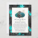Teal, turkos, svart och guld gothic reducerade bröllop gästlista med ro och en mönster med ornat skalle. I dessa osäkra tider kan det hända att man måste hålla ett mindre bröllop än vad som ursprungligen planerades. Det här annonskortet kommer att ta bort obehagligheten och ta en massa av dig. Du kan dessutom ge dig ett alternativ för att gå med dig för en virtuell ceremoni.