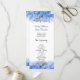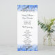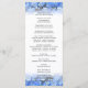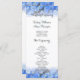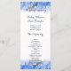 Blå blommigtens långa ceremoniprogram i bröllop. Anpassa båda sidor av detta kort för vattenstånd gräns bröllop och ange ordningen för ceremonin på ena sidan och familjen namn och bröllopsfest namn på baksidan. Svart text finns i skript och stilar för utskrivet teckensnitt och är lätt att läsa. Prisvärda kort med måttet 4 x 9 tum.