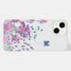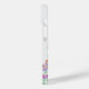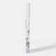 Rosa och lila blommigt gräns med vattenfärg med blå fjäril på mjuk, vit texturerad bakgrund.