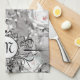 blommigt grått för vinterblomman i vit ros kökshandduk