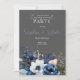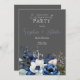 Vi presenterar vår sofistikerade inbjudan till blommigt för snyggt, designad för att perfekt fånga romantik och upphetsningen hos ert kommande firande. Den här inbjudan innehåller en elegant grått-bakgrund med delikat blå, vit och grönt blommor, accentuerad med mjukt blått kant. Den största delen av texten i inbjudan är tryckt i skarpt vitt och skapar ett klassiskt utseende och ett elegant. Men parets namn är skrivet i ett blått skript som helt och hållet matchar de mörk blått blommornas blå kant. Det här lägger till en aning personlighet och romantik till designen. skapar den perfektens inbjudan att meddela din förlovning. Vår högkvalitativa utskrift ser till att alla detaljer, från det invecklade blommönstret till skripttexten, fångas med precision och tydlighet. Denna inbjudan är inte bara vacker utan återspeglar också kärlek och glädjen hos paret lycklig och uppmanar gästerna att gå med i firande i er förlovning. Denna mångsidiga inbjudan kan ge kostym vilken förlovningsfest som helst, från en formell cocktail party till en avslappnad bäckengrick. Ordna din inbjudan i dag och låt oss hjälpa dig att göra din speciella händelse ännu mer minnesvärd. Dina gäster kommer att bli glada över att få den här fantastiska inbjudan i posten, och du blir glad att se dem samlas för att fira kärlek.