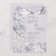 De här 5 x 7-tums bröllopsinbjudningarna har en abstrakt löv-design i skuggor av dammig grått och lavender med platshållare: "Vi inbjudan för att fira bröllop av, " bruden och brudgummen för- och efternamn, datum, tid, plats för bröllop, namn och adress, "mottagning att följa".