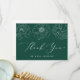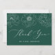 Tack för elegantens blommigt, ett kort som innehåller en gräns av vita blommor med skarp bakgrund i grönten. "Tack" visas i ett vitt, modernt skript med ditt namn som visas nedan. Kortets baksida innehåller ditt meddelande i svart text. Tack för blommigten är perfekt till använda för bröllop, möhippor, babyduschar, födelsedagar med mera!