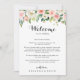 Detta enkla blommigt grönt blad bröllop välkomna brev är perfekt för ett tropiskt bröllop. Utformningen har en underbar vit, rosa och handmålad ro inbäddad i gröntens blad, inspirerande konstnärlig skönhet. Anpassa fronten med ett välkomstmeddelande till dina gäster och till namn. Anpassa baksidan med schemat för händelser och annan användbar information.