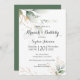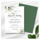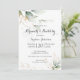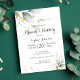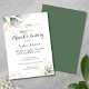 Eleganten och den moderna blommigt sommarbrunken och bubblan inbjudningskort för möhippan har en bukett av mjuka pastellvattenfärger, guld-folie och bladgreer i nyanser av elfenbensvit nyans med lush emerald grönt botaniska löv. Anpassa den här söt guld och grönt-blommigten brunch & bubly-inbjudan med information om möhippan i elegant med text accenterad med handskriven stil-kalligrafi. Vackert botaniskt könsneutralt mönster för bruden. Grönt och vita blommor är perfekter för möhippa och bröllop.