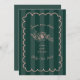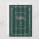 Bröllop-tema med text inuti hand plockade rosa ram med rosa blommigt botaniska linjen teckning över emerald grönt rand bakgrunden.